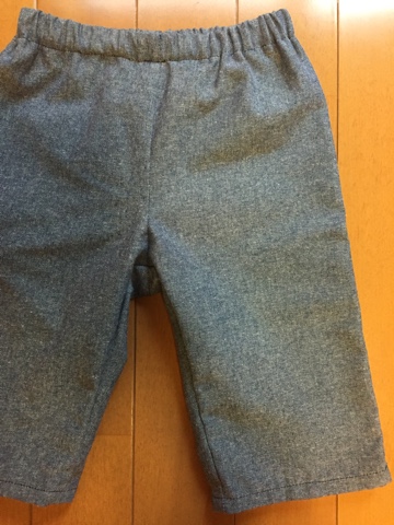 1歳の息子さんの簡単ゴムパンツ完成。