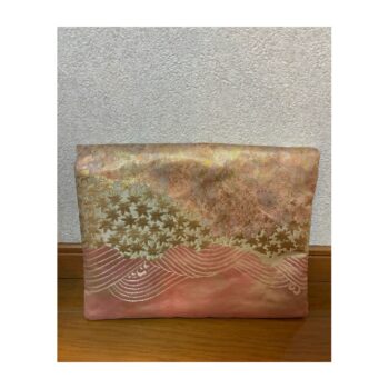Kさん、着物の帯を使って何か作りたいと、お持ち下さいました。きれいな色合いの上品で、パーティ使用にもなりそうな帯。